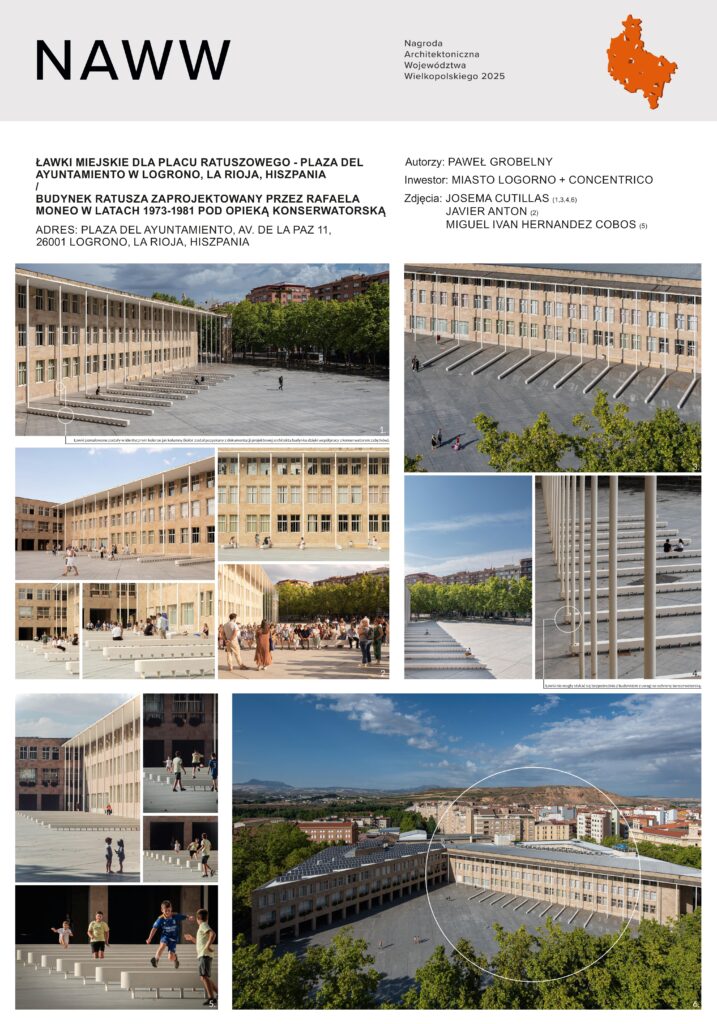 Nagrodę przyznano za subtelną, ale bezkompromisową ingerencję w przestrzeń publiczną Placu Ratuszowego. Praca z ogromnym szacunkiem, ale też bez kompleksów uzupełnia i wzbogaca projekt Rafaela Moneo. Głębokie zrozumienie architektury, kontekstu placu i aspektów społecznych zostało zrealizowane z użyciem minimalnej ilości środków wyrazu co zasługuje na ogromne uznanie.